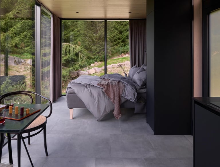 Luxury Mid-Century meets breathtaking views, ÖOD House is the pinnacle in luxury add-ons for your stay. This private primary-suite hosts a King-sized bed, full bathroom including a unique acrylic lake view soaking tub, and views that can't be beat.