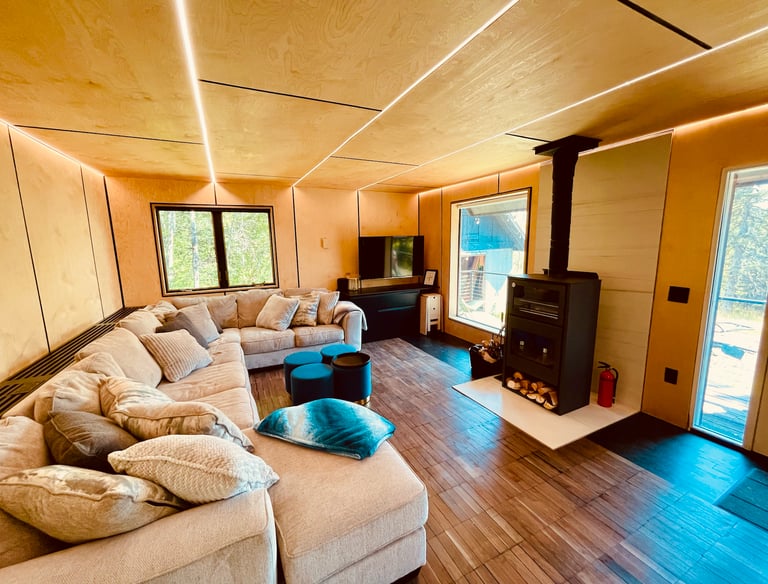 Bunk House is a Scandinavian Modern gathering place for your whole crew. Boasting 1 queen bunk, 2 twin bunks and a couch that sleeps 2, or gathering living/gathering space for 10+, as well as quarter-bath with incinerating toilet.